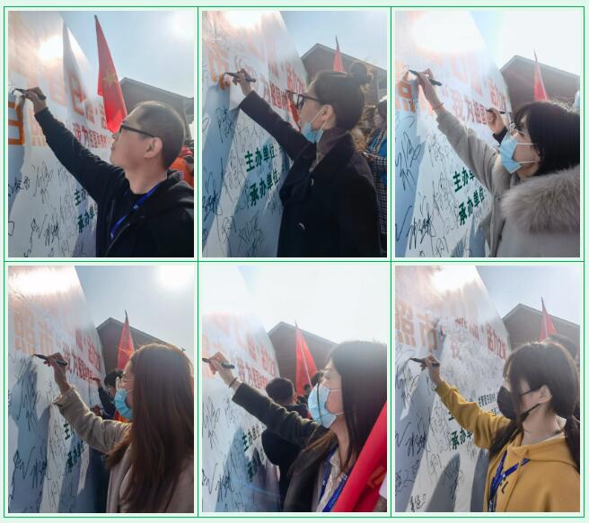 活動伊始,主辦方舉行了簽字儀式,參加植樹活動的青聯委員、學聯委員、青年文明號集體、少先隊、志愿者協會等共29支隊伍代表,400余人在簽名墻上簽名留念。
